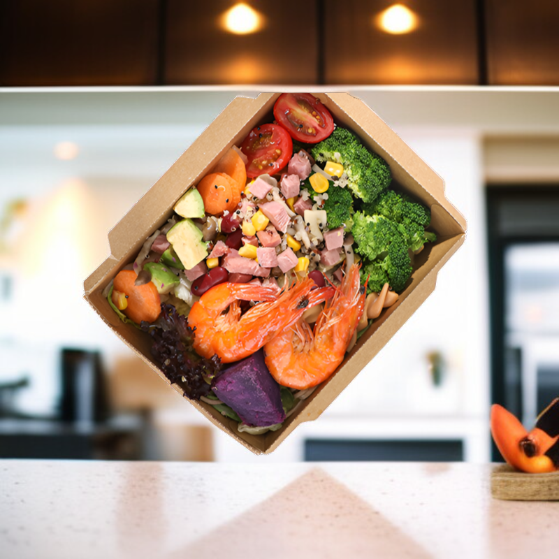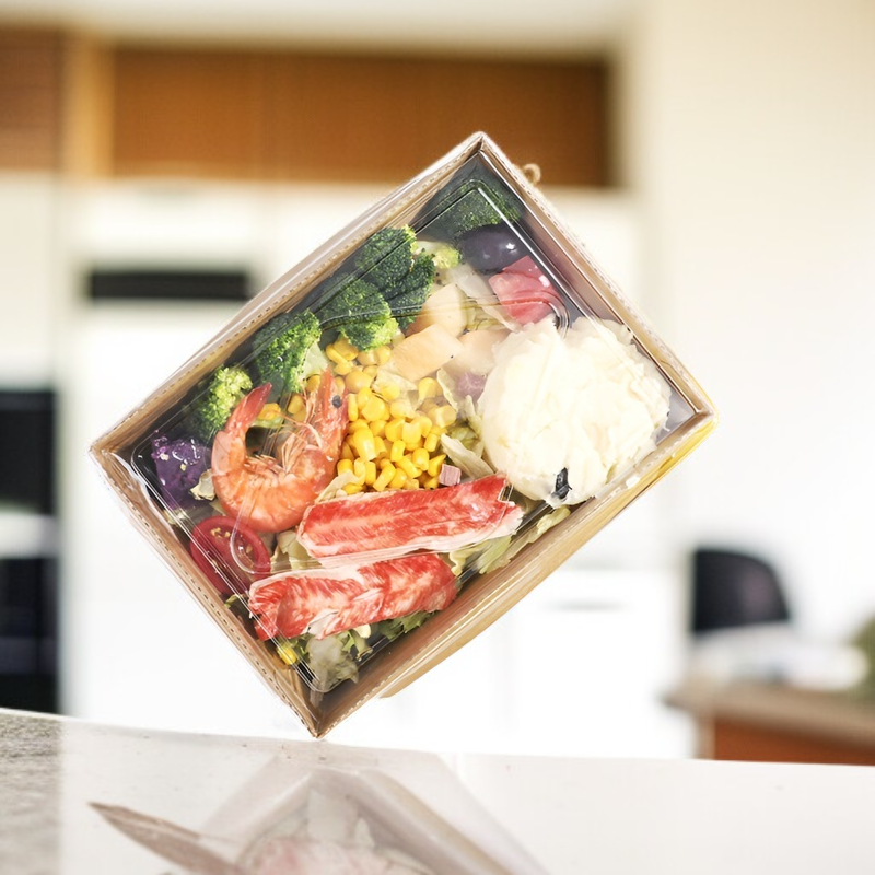 ● 크라프트지와 투명 뚜껑의 조합으로 음식의 신선함을 한눈에 확인할 수 있어 위생적이고 실용적입니다.